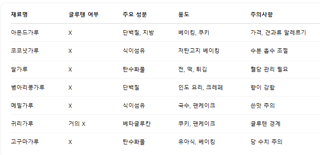 📌 밀가루 대체 식재료 비교표