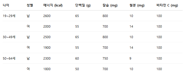 💬 연령별·성별 하루 권장 섭취량, 제대로 알고 챙기자!